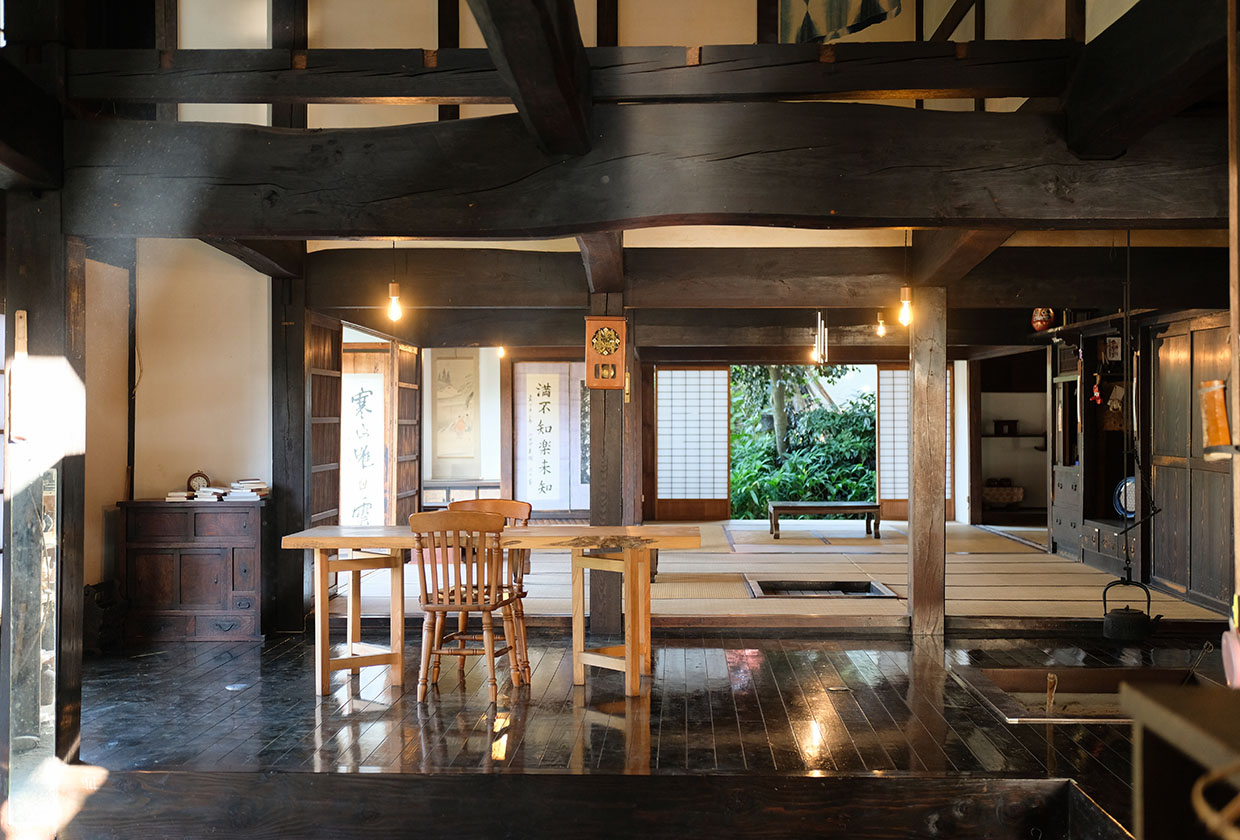 今は都内にお住まいの家主さんが、月に一度は風通しの掃除と草刈りをして、とても大事に手入れをされている気持ちのいい空気が流れる古民家。